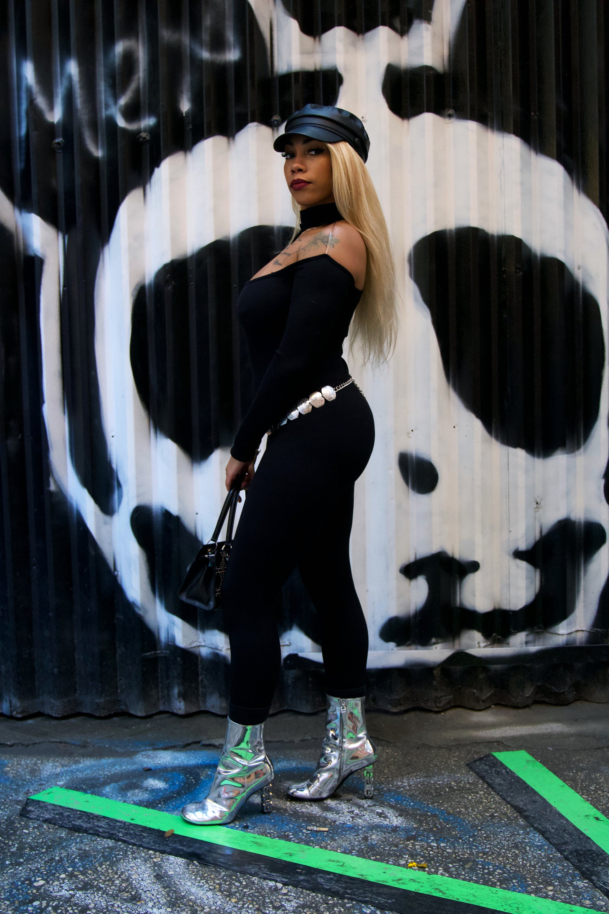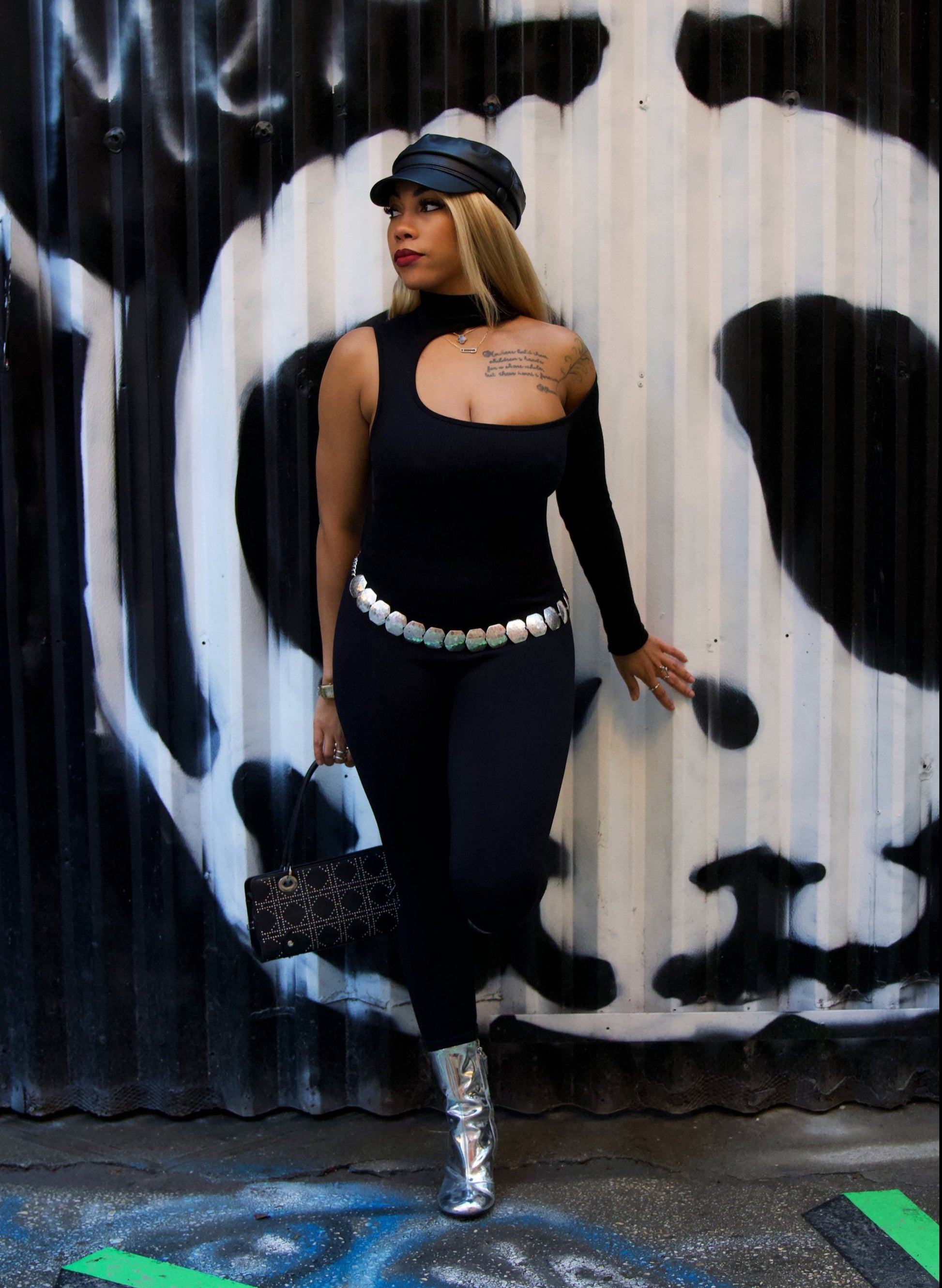 The 1Arm Bandit isn’t just a jumpsuit; it’s an attitude. It’s for those who carve their own path, who aren’t afraid to stand out, and who believe that fashion should be fun, fearless, and unapologetically you. Made from super stretchy fabric, the 1Arm Bandit moves with you, not against you. Strut, dance, stretch, lounge – this jumpsuit's got your back (and your front). Features mock neckline, asymmetrical design, ribbed material and one arm sleeve. Main picture and secondary model is wearing a size S/M.